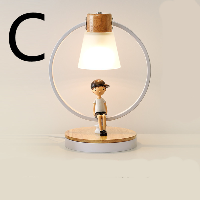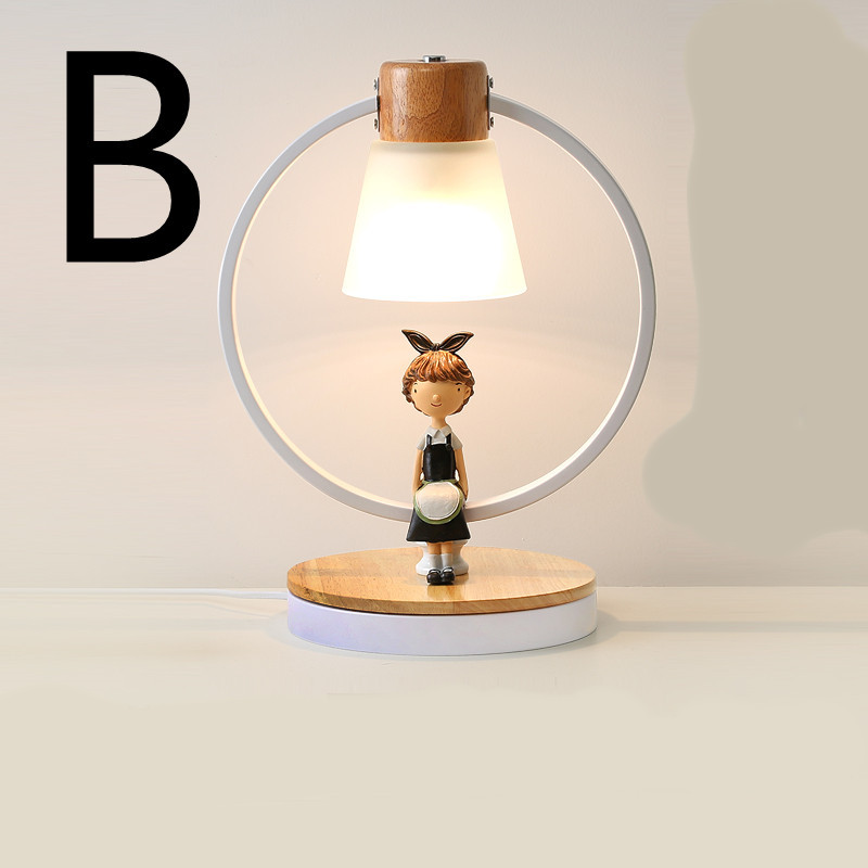 Product information: Material: solid wood, glass Style: Fashion and simplicity Features:Boy, girl style A: Matte white-boy [LED warm light -5W] B: Matte white-girl [LED tri-color light -5W] C: Matte white-boy [LED tricolor light -5W] D: Matte black-girl [LED warm light-5W] E: Matte black-boy [LED warm light-5W] F: Matte black-girl [LED tricolor light -5W] G: Matte black-boy [LED tri-color light -5W] Size Information: 28*38CM Packing list: Desk lamp*1 Product Image: